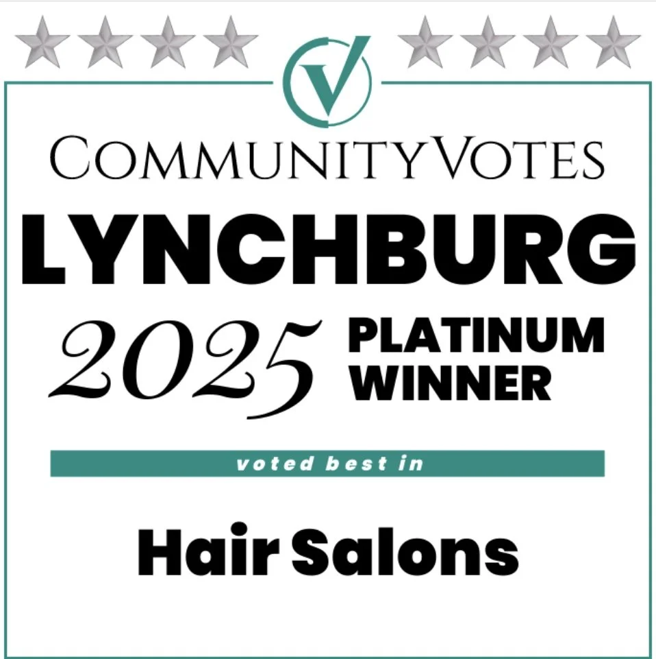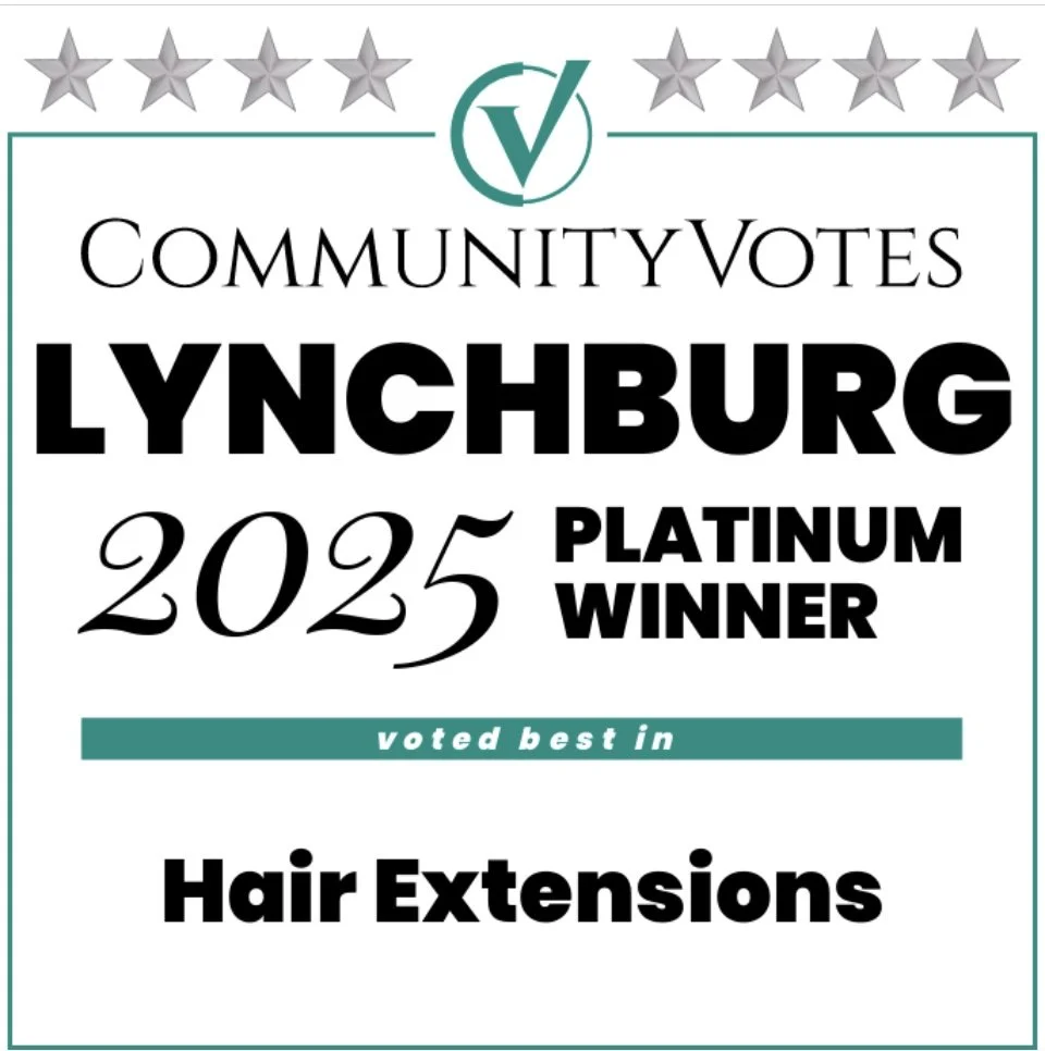 -In my first two years of business I won Platinum in the 2024 & 2025 Lynchburg Small Business for Best Hair Salon and Hair Extensions!